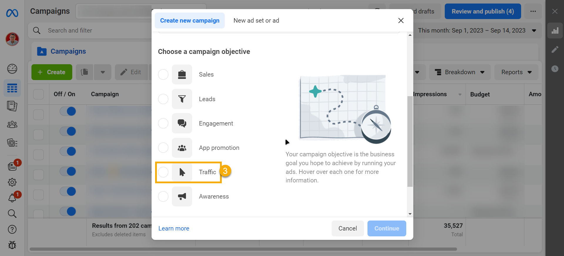 - Select 'Traffic' and click Continue.