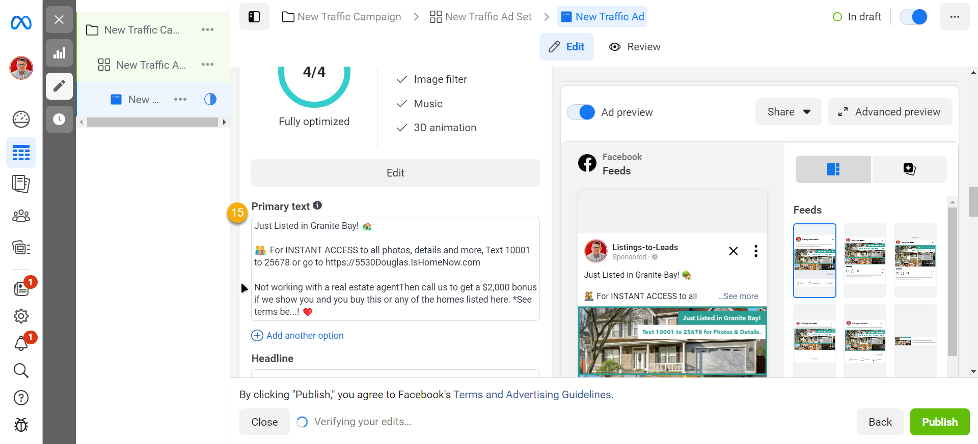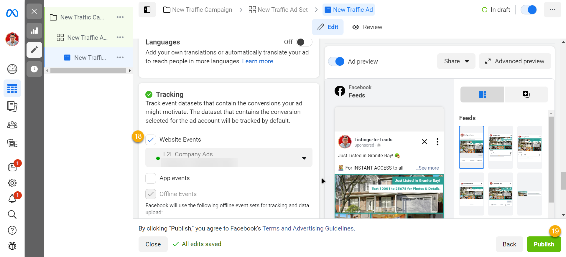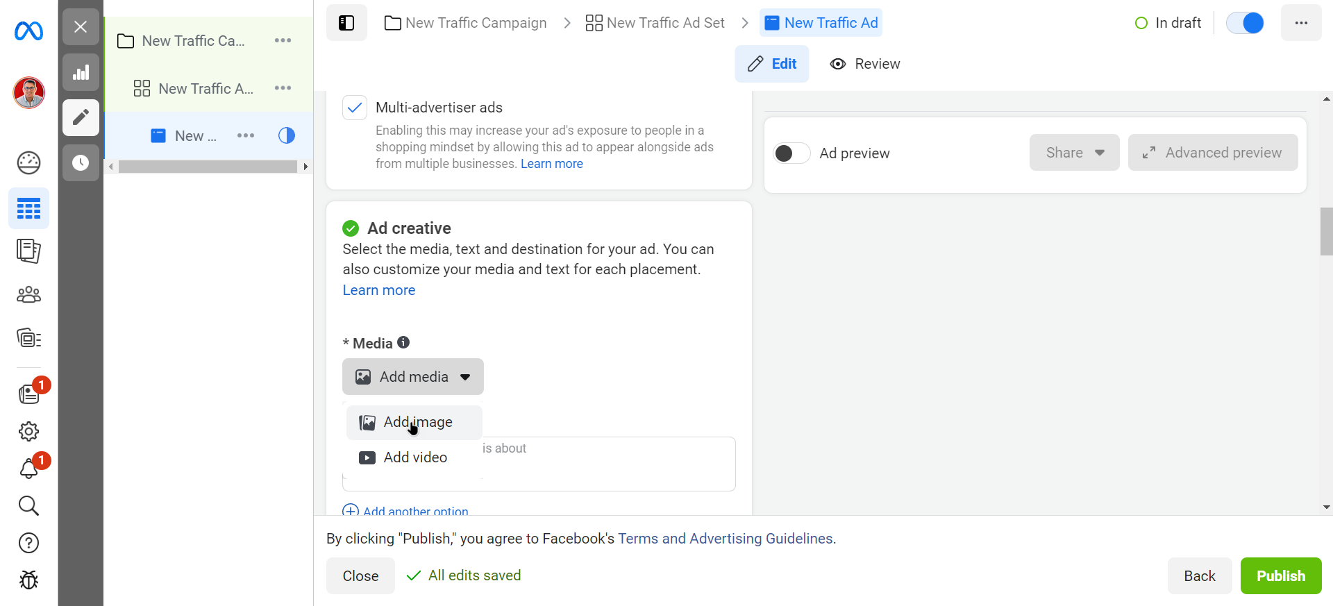 - Click ‘Publish’. Facebook will proceed to review and approve your ad.